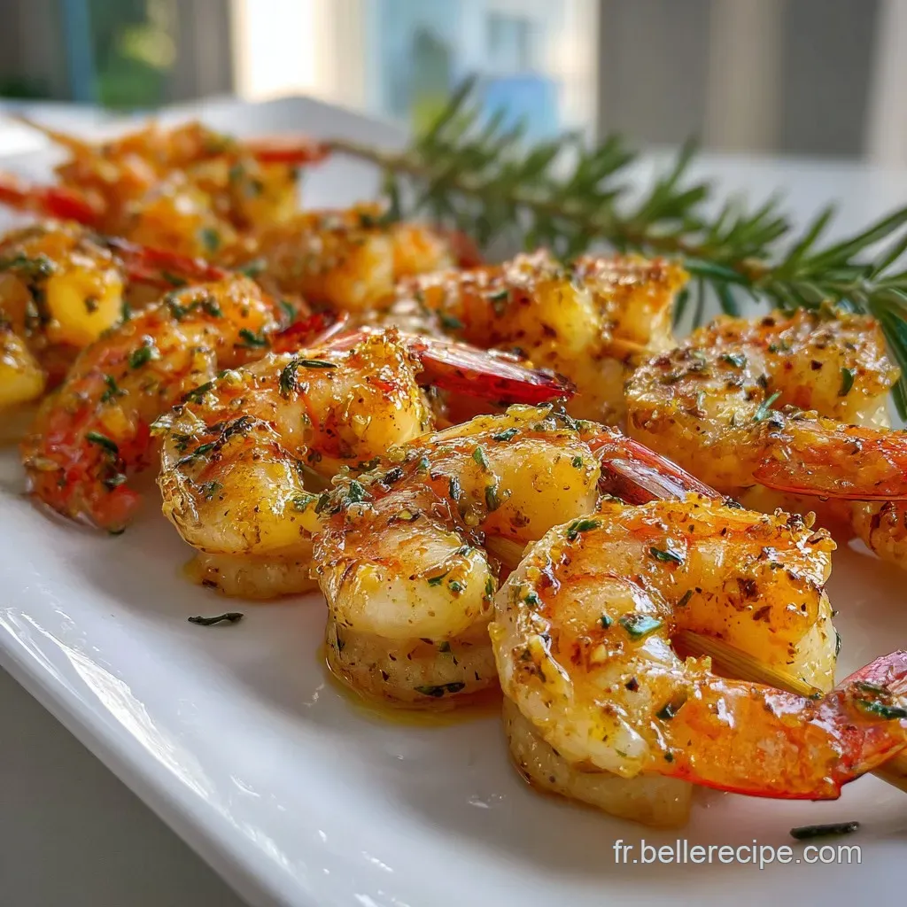 Si tu préfères les cocktails, un Gin Tonic avec une branche de romarin ou un zeste de citron vert rappellera les notes botaniques de la recette. Pour un apéritif complet et varié, n'hésite pas à alterner avec des saveurs plus douces comme mes Douceurs au Fromage recette qui apporteront du réconfort après le piquant de la crevette.
