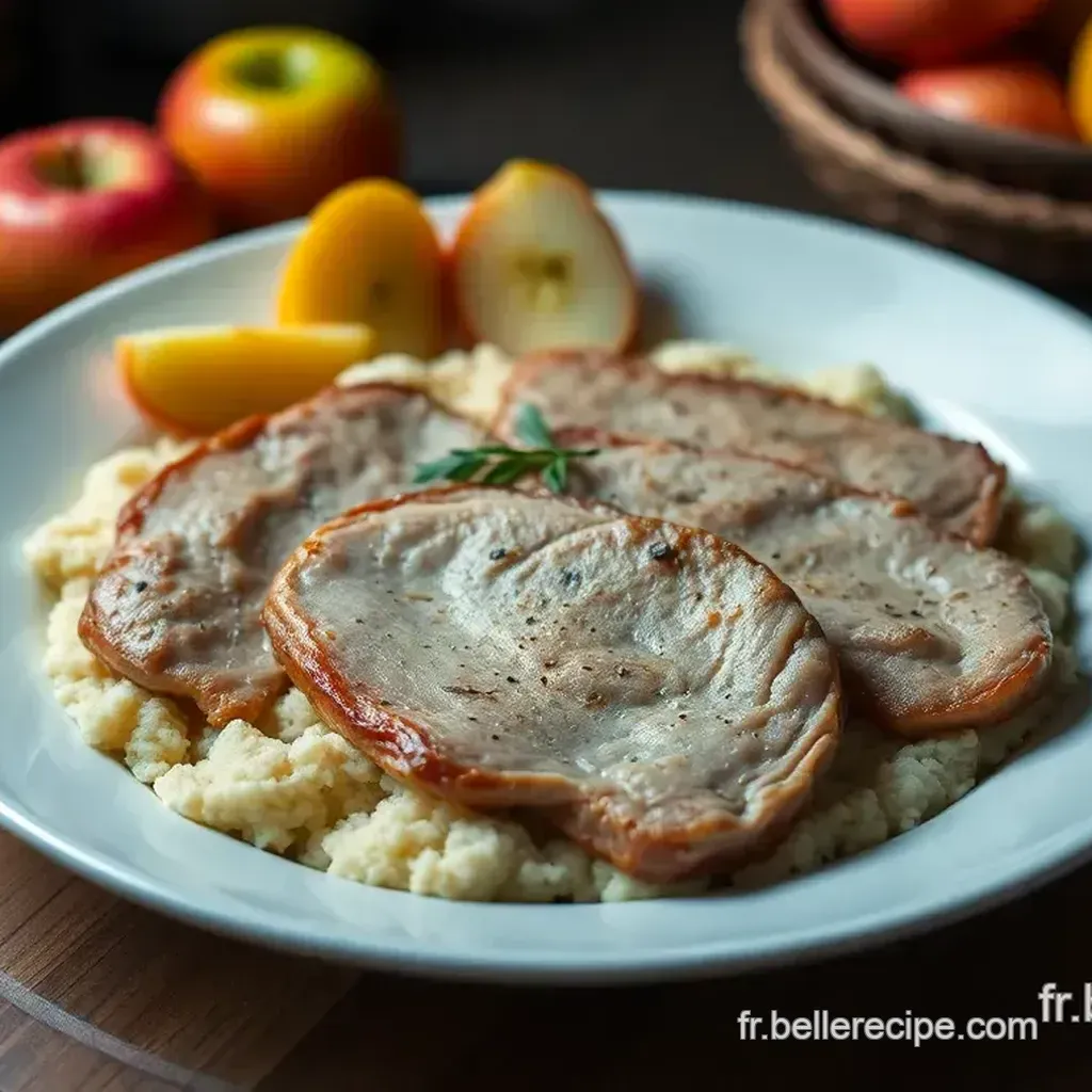 Ah, la présentation ! pour un effet "wow", dispose tes escalopes avec soin. une petite astuce ? utilise des assiettes blanches pour faire ressortir les couleurs vives de ta sauce aux pommes.