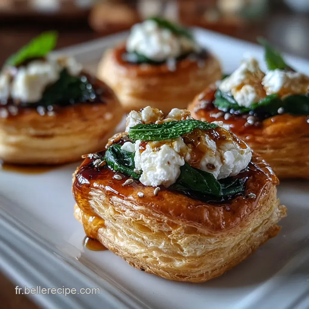 N'hésitez pas à ajouter quelques touches de couleur : une feuille de basilic frais par ci, une goutte de miel supplémentaire par-là. J'aime aussi servir ces feuilletés avec une petite coupelle de chutney d'oignons rouges pour ceux qui aiment accentuer le côté sucré salé.