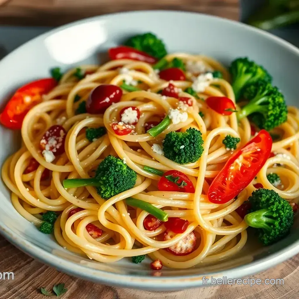 Ajoutez les légumes autour, comme s'ils dansaient autour des pâtes. et pour la finition, un peu de parmesan râpé sur le dessus et quelques feuilles de basilic frais, et voilà ! vous avez un plat à partager qui fera saliver vos invités.