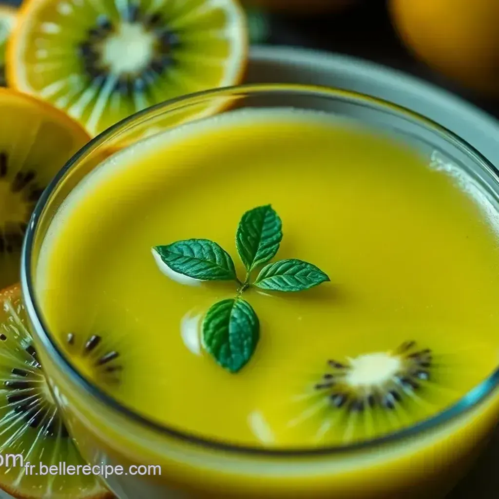 Imaginez un mélange de saveurs qui danse sur votre langue : la douceur du kiwi jaune, l'acidité du citron vert, et la fraîcheur de la menthe.