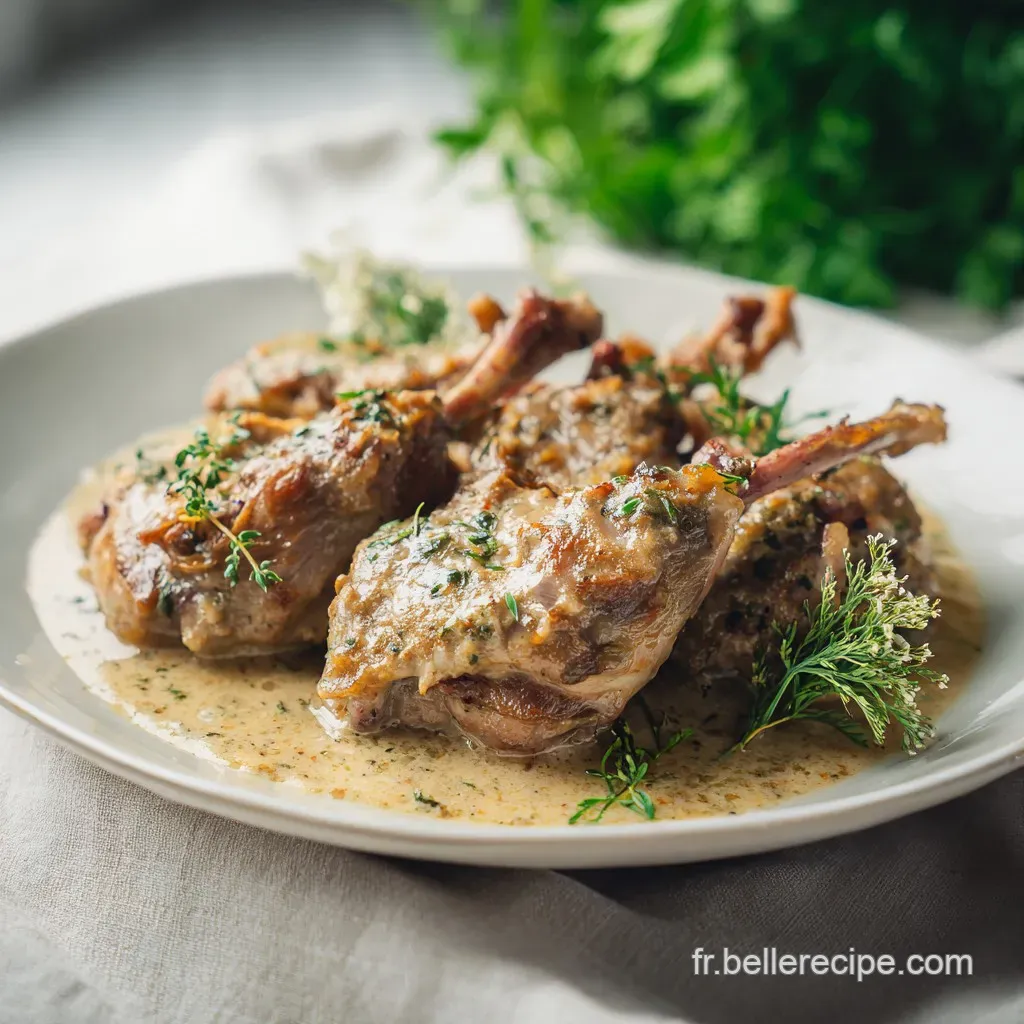 C'est un plat mijoté classique. Il s'agit d'un lapin découpé et cuit lentement dans une sauce riche à base de vin blanc, de champignons, de lardons et d'aromates. L'objectif est d'obtenir une viande très tendre dans une sauce onctueuse.