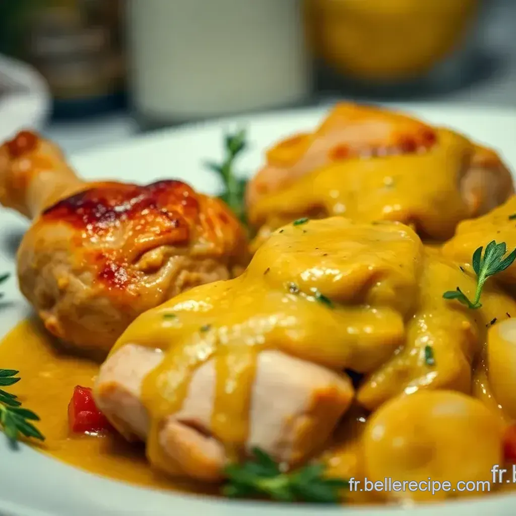 Le poulet au moutarde n'est pas juste une recette ; c'est une belle histoire d'amour entre le poulet tendre et la moutarde piquante.