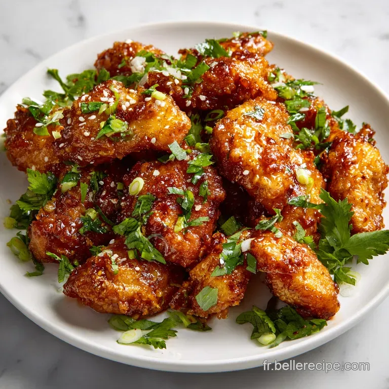 L'utilisation de la poudre d'ail (1 cuillère à café) dans l'enrobage sec est primordiale. L'ail frais brûlerait à la chaleur de la friteuse, devenant amer. On réserve donc les 3 gousses d'ail frais hachées pour la sauce finale, où elles seront juste infusées. C'est cette double couche d'ail qui donne cette profondeur aromatique. Pour un repas complet, ce plat se marie divinement avec une base de riz jasmin ou mes Nouilles Sautes Poulet recette pour un festin 100% fait maison.